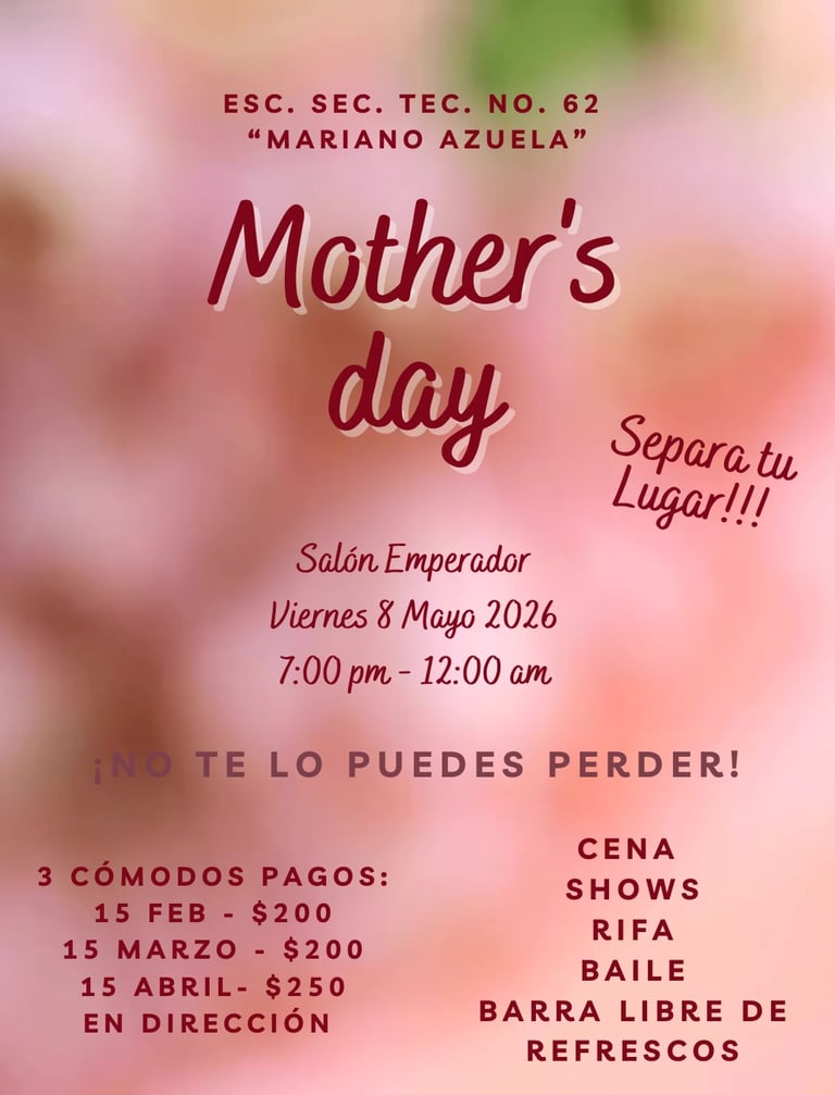 Todas las mamás de nuestra institución, las mamás de nuevo ingreso e invitadas podrán ser parte de nuestra Gran Celebración del Día de las Madres en el Salón Emperador