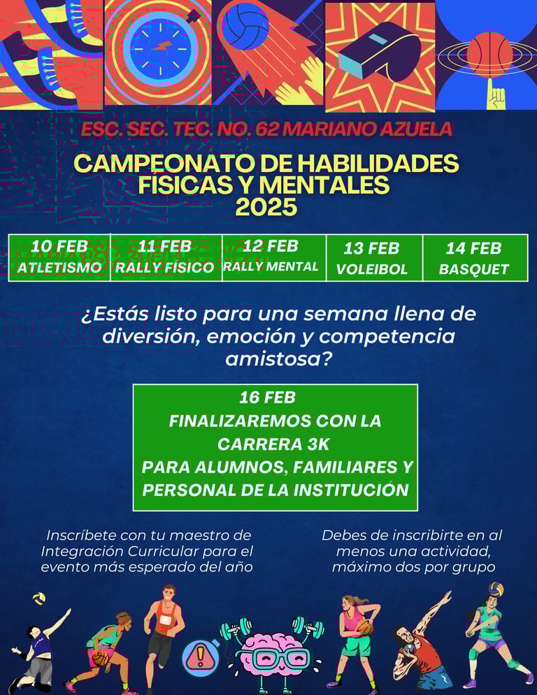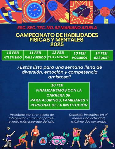 Este evento incluye competencias de atletismo, rally físico y mental, así como juegos de voleibol y baloncesto, fomentando una sana competencia y el trabajo en equipo.